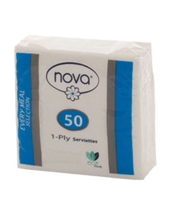 Nova 50 pack serviettes provide a hygienic and convenient wiping solution suitable for lunchboxes, picnics, and small gatherings.